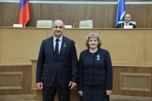 Полпред Президента РФ в УрФО Артём Жога по поручению главы государства Владимира Путина вручил Людмиле Бабушкиной орден Почёта