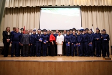 Кадеты класса «Юный следователь» школы № 48 Екатеринбурга поздравили сотрудников Следственного управления Следственного комитета РФ по Свердловской области с 15-летием образования ведомства