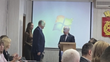 На заседании Нижнетагильской городской Думы Вячеслав Погудин вручил Почётный знак «Серебряный знак Законодательного Собрания Свердловской области» одному из старейшин депутатского корпуса Нижнего Тагила Владимиру Антонову.