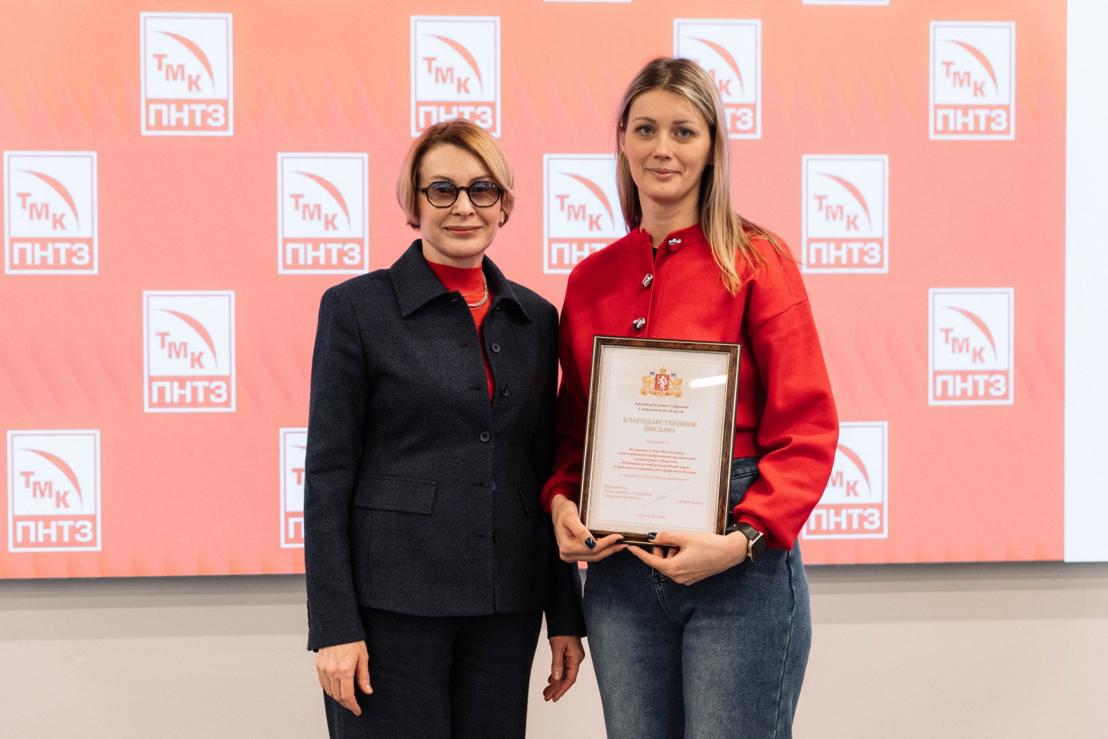 Депутат Законодательного Собрания Свердловской области, руководитель фракции «Единая Россия» Елена Чечунова поздравила активистов с праздником, вручила благодарственные письма Законодательного Собрания Светлане Вологжаниной и Елене Волошиной. Своей добротой, неравнодушием женщины вносят вклад в укрепление коллектива, в решение повседневных задач.