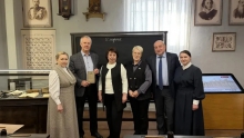 Вместе с главой города Александром Берчуком и председателем Думы Любовью Замятиной депутат посмотрел экспозицию, пообщался с генеральным директором музея Мариной Моревой. Для гостей провели стилизованный урок грамматики – всё, как сто лет назад.