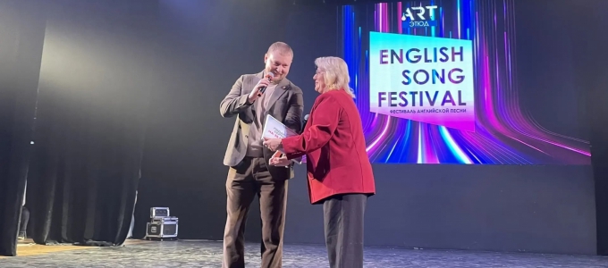 Владимир Смирнов вручил сертификат на фестивале английской песни, который ежегодно организует гимназия «Арт-Этюд».