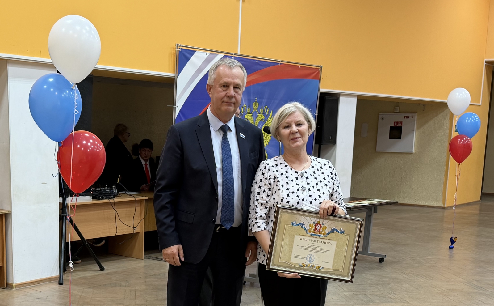 На празднике, собравшем весь дружный коллектив, спортсменов с родителями и ветеранов-преподавателей, депутат по поручению председателя Законодательного Собрания Людмилы Бабушкиной вручил почётную грамоту старшему инструктору-методисту Татьяне Манаковой, которая работает в школе со дня её основания, поздравил присутствующих с юбилеем и пожелал юношеского запала и новых достижений.